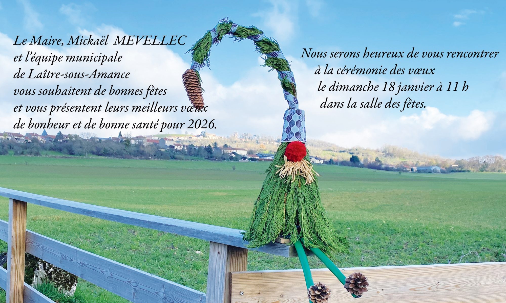Le Maire et l’ensemble de l’équipe municipale vous invitent à la cérémonie des voeux le dimanche 18 janvier à 11h dans la salle des fêtes.